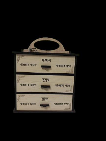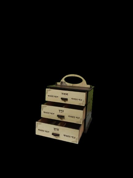 উঃ- এই মেডিসিন বক্স এর কাজ হল -প্রেসক্রিপশন অনুযায়ী আপনি আপনার ঔষধের পাতাগুলো-শুধু এই বক্সে রেখে দিবেন (সকাল, দুপুর এবং রাতের কম্পার্টমেন্টে/খোপে।